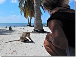 Donderdag 15 februari gaan we met de beide boten om 10 uur ankerop voor de 25 mijl naar Cayo Cantiles waar een kolonie apen huist en een ranger-station die de apen voert. De apen horen er van oorsprong niet en waarom ze er heen gebracht zijn…geen idee! We voeren alleen genua en stagfok maar maken niet erg veel voortgang en raken hopeloos achter bij de Agaath.