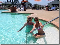 Corinne heeft met vriendinnetje Pippa een heerlijke dag voor ons geregeld bij het zwembad waar Pippa en haar man Adrian wonen. Veel Amerikanen wonen in een gated community. Deze heet Kingsmill en is echt prachtig! Met een enorm zwembad erbij, tennisbanen, golfcourse… Steve is militair en Corinne en Steve hebben veel vrienden die militair zijn. Uit alle windstreken van de wereld. Pippa en Adrian zijn Engelsen en hun uitzending hier is bijna voorbij. Waar ze daarna weer gestationeerd worden is nog niet duidelijk. Het betekent voor Corinne en Steve regelmatig nieuwe vrienden maken maar ook vaak afscheid nemen van vrienden, de minder leuke kant van het werk natuurlijk!